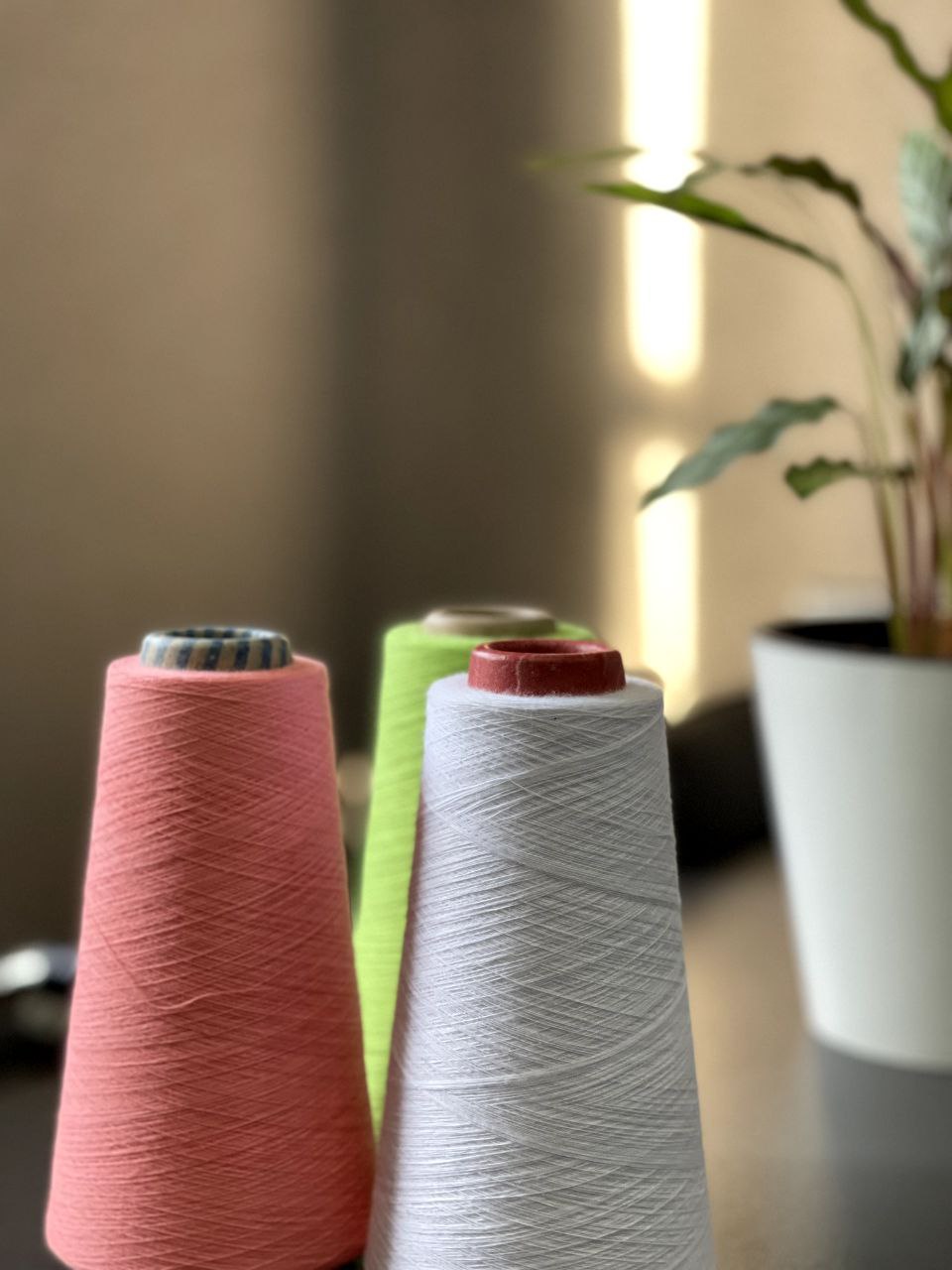 Paxta ipi 100% kardlangan Ne 20/1 (Nm34/1), bo'yalgan, trikotajlangan Uch rang: 1. Marjon. Rang kodi: 1072 2. Oq. Rang kodi: 5600 3. Och yashil. Rang kodi: 1473